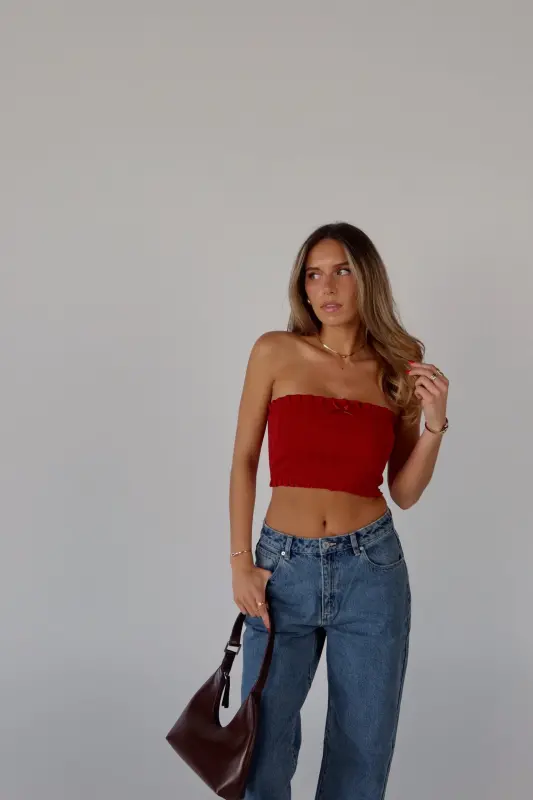 Introducing the Pintuck Bow Detail Tube Top, a stunning strapless piece designed to make a statement. This chic tube top features intricate pintuck detailing throughout, adding texture and sophistication to the design. The elegant bow detail on the neckline enhances its feminine appeal, while boning throughout ensures a structured, flattering fit. Finished with a back zipper for easy wear, this top is perfect for special occasions or nights out when you want to exude style and confidence.