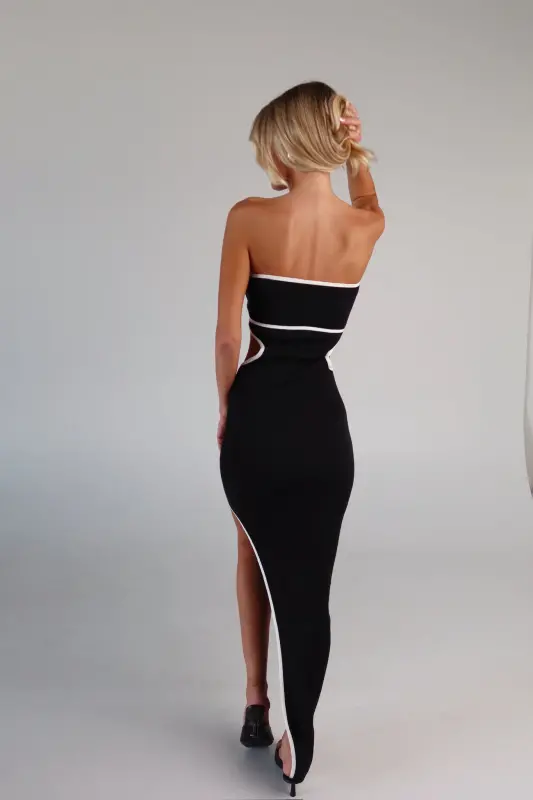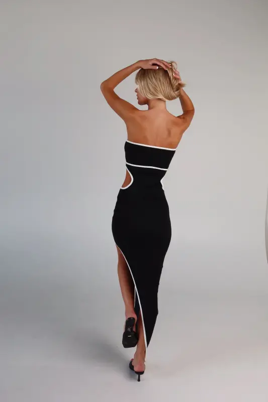 This captivating piece features an alluring open shoulder design that gracefully highlights your neckline, while the daring side cut-out adds a touch of modern sophistication. Crafted from a luxurious knit fabric, this midi dress offers a perfect blend of comfort and style, hugging your curves in all the right places. Ideal for any occasion, the Evelyn Knit Midi Dress ensures you make a statement, whether you're attending a special event or enjoying a night out.