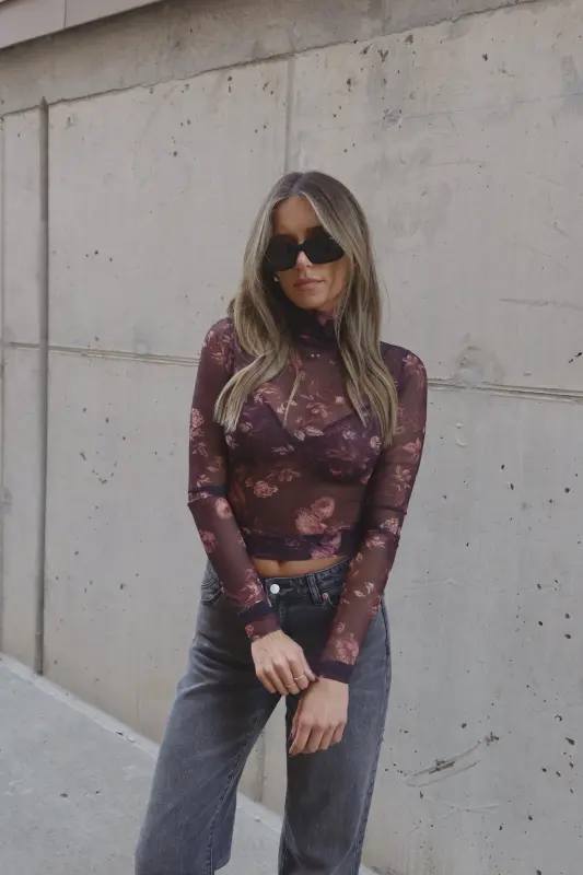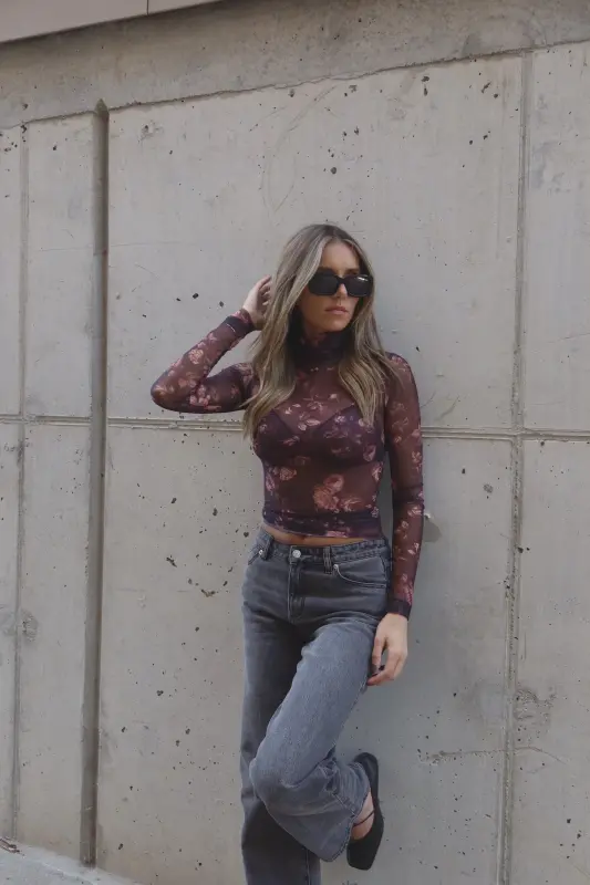 Stay chic and stylish with our Ezra Floral Mesh Long Sleeve Top. Featuring a timeless turtleneck and long sleeves, this top offers a sleek, on-trend look perfect for any occasion. The breathable floral mesh fabric adds a touch of elegance and versatility, making it ideal for layering or wearing on its own. Whether you're dressing it up or down, this top is designed to keep you effortlessly fashionable.