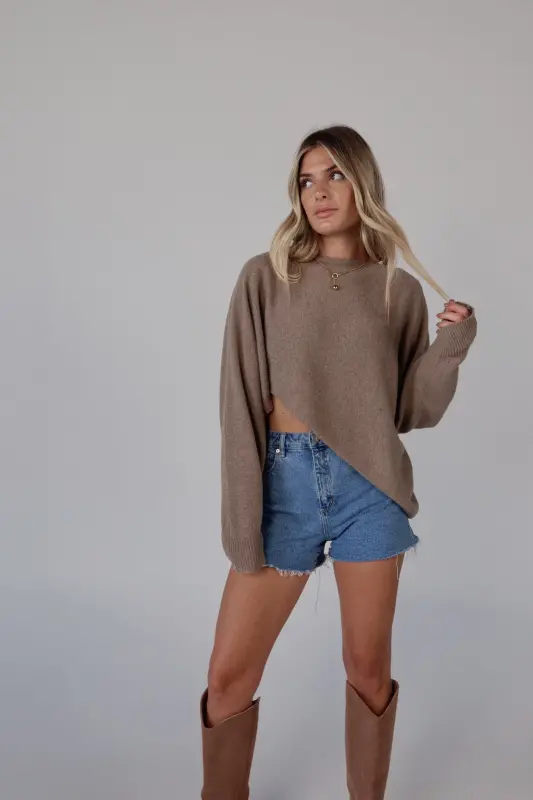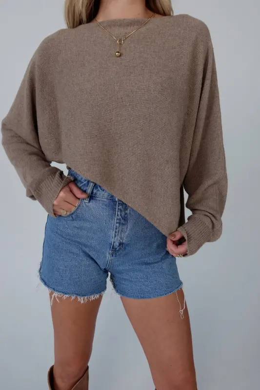 The Hudson Asymmetrical Knit Top is the must-have piece for your fall wardrobe. Featuring a long sleeve and a stylish asymmetrical hem, this top brings a modern twist to your cozy essentials. With an oversized sleeve length for that perfect cozy fit, it offers both style and comfort. The high-cut, straight shoulder silhouette and asymmetrical cut elevate the overall look, while the 80% acrylic and 20% wool blend delivers warmth and durability. This wool knit material gives you the softest feel, perfect for layering or wearing on its own. Runs true to size and is exactly what we’ve been excited to see this fall—we're obsessed!