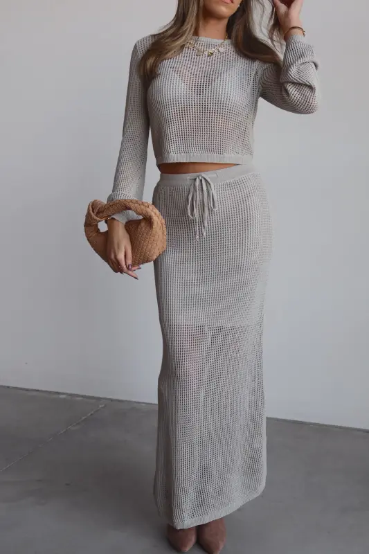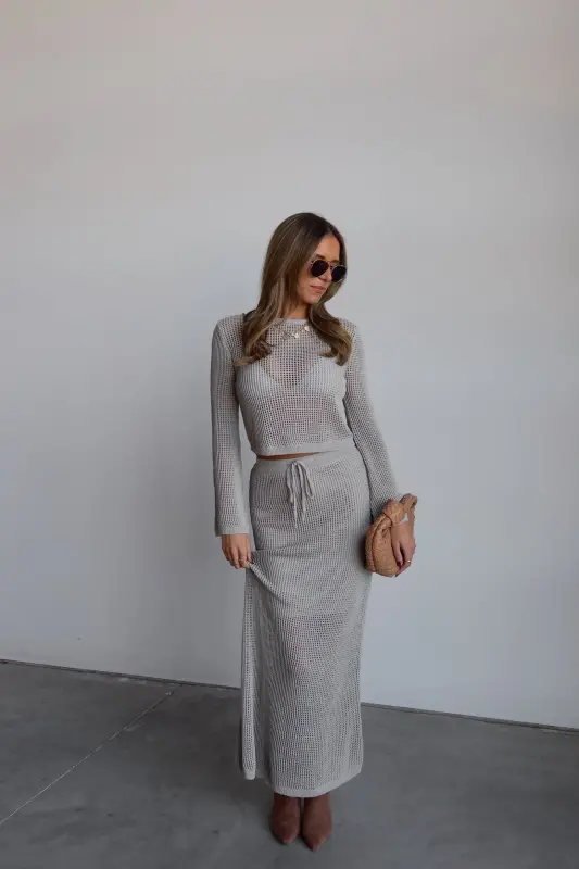 Stay effortlessly chic with the Breezy Crochet Long Sleeve Top, perfect for warm weather layering. This lightweight slip-on top features a delicate crochet design, offering breathable comfort and boho vibes. With its long sleeves and relaxed fit, it pairs seamlessly with the matching crochet skirt or your favorite denim for a laid-back yet stylish look. Whether you're at the beach or heading out for a casual day, this top is your go-to for versatile elegance.