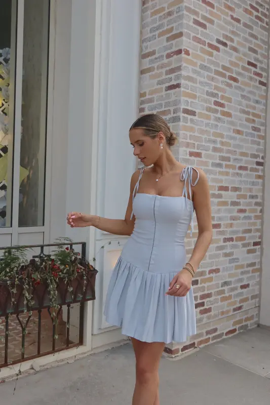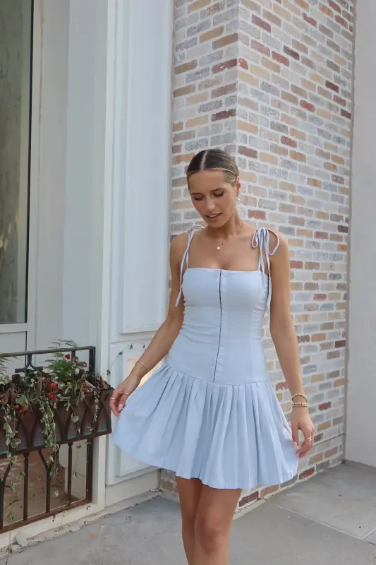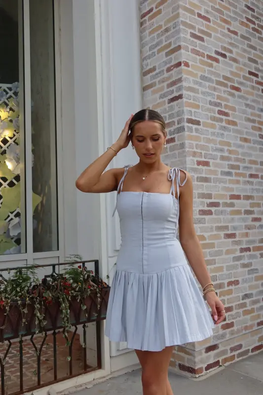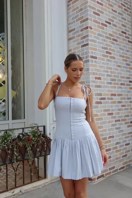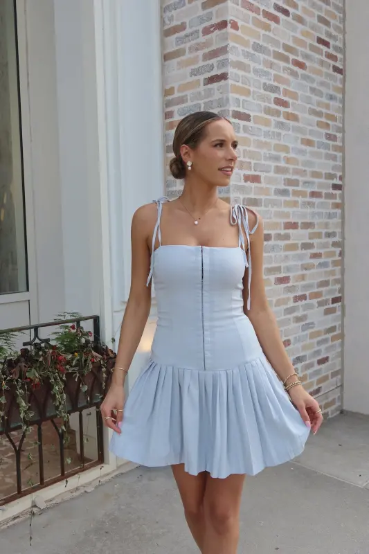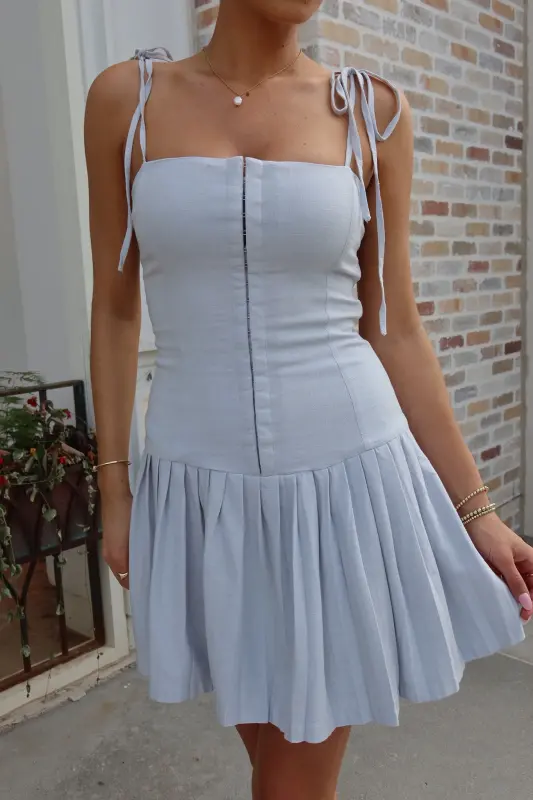 Introducing our chic and versatile Quinn Pleated Mini Dress, designed to make a statement. This stunning piece features tie-straps and spaghetti straps for an adjustable and stylish look. The solid color provides a timeless appeal, while the corset-style bodice and pleated detailing add a touch of elegance. The high waist creates a flattering silhouette, and the zipper closure ensures a secure fit. Perfect for any occasion, this mini dress is a must-have addition to your wardrobe.
